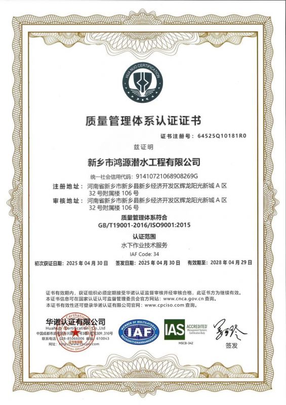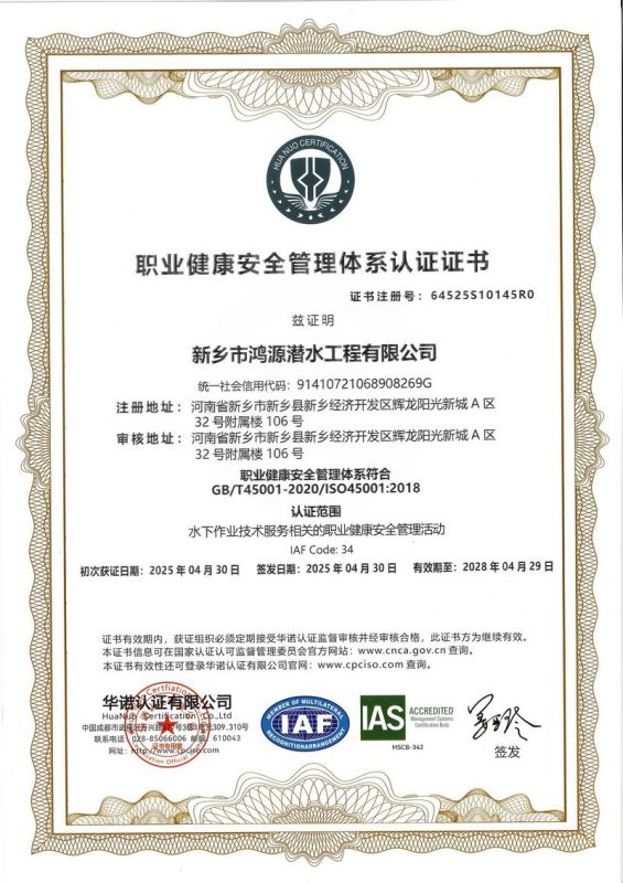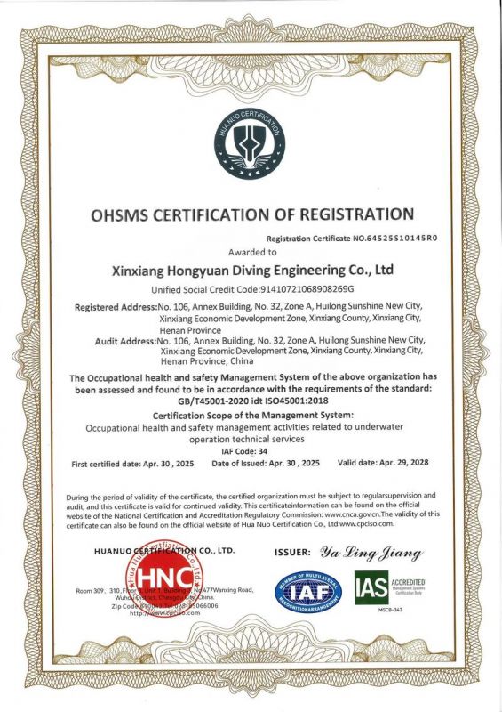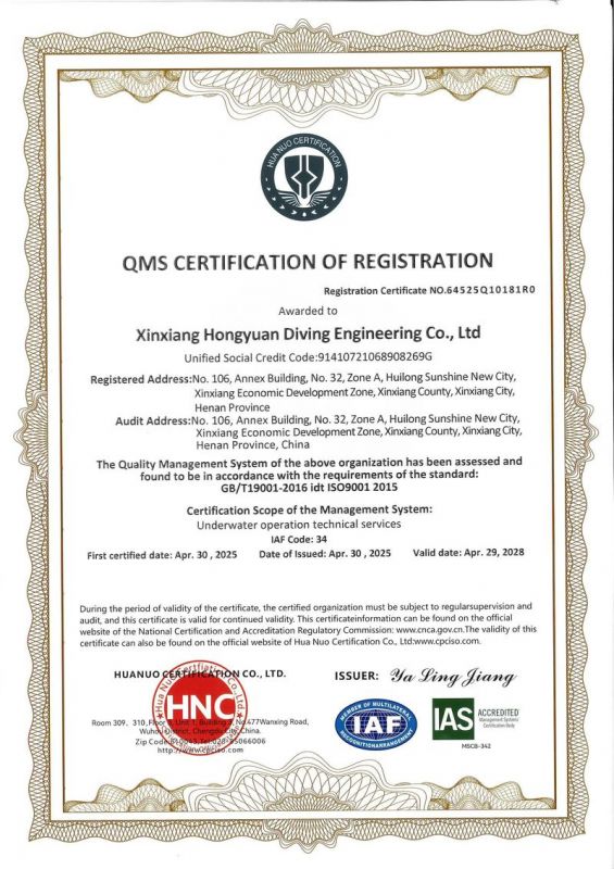新鄉(xiāng)市鴻源潛水工程有限公司,有從事潛水行業(yè)二十多年的潛水團隊。公司具有獨立法人資格,注冊資金600萬元。   公司的潛水人員、潛水檢測人員、潛水焊接人員均經(jīng)過正規(guī)培訓,全部持有國內(nèi)權(quán)威機構(gòu)頒發(fā)的資質(zhì)證書。我公司水下焊接可靠,質(zhì)量優(yōu)良,技術(shù)過硬,可水下焊接鋼管樁,水下焊接犧牲陽極鋅塊,水下焊接連接梁,水下封堵焊接等等施工,報價合理,拒絕暴利,竭誠為您服務!水下電焊工程,水下電焊報價合理水廠電廠的水池、水道清淤、泵房清理、管道鋪放、攔污柵清污、更換閘門起落、導流洞、水庫壩體等維修施工水下補強加固:對水利電力系統(tǒng)水庫、大壩及沿海內(nèi)河港口、碼頭等水工建筑物水下鋼結(jié)構(gòu)或混凝土結(jié)構(gòu)缺陷進行。無論是對現(xiàn)在或?qū)恚紝⑹且豁椃浅S幸饬x的工作。水下焊接將成為水下作業(yè),水下安裝,水下維修等水下作業(yè)工程中不可或缺的重要工藝手段.公司堅持“先進的技術(shù)設備.優(yōu)質(zhì)的服務質(zhì)量.服務效率.熱情的服務態(tài)度,為生產(chǎn)經(jīng)營理念,以拒絕暴利合理收費為原則立足全國市場。我們將以優(yōu)質(zhì)的產(chǎn)品與售后服務來打造用戶良好體驗。愿同新老客戶竭誠合作、互惠互利、共創(chuàng)輝煌!水下電焊工程,水下電焊報價合理,鋼圍堰清淤公司鴻源-水下電焊工程,水下電焊報價合理,鋼圍堰清淤公司,水下電焊工程。      新鄉(xiāng)市鴻源潛水工程有限公司我公司成功打造鴻源優(yōu)質(zhì)服務。公司的潛水人員、潛水檢測人員、潛水焊接人員均經(jīng)過正規(guī)培訓,全部持有國內(nèi)權(quán)威機構(gòu)頒發(fā)的資質(zhì)證書。經(jīng)過多年經(jīng)營,公司具備公司具有獨立法人資格。